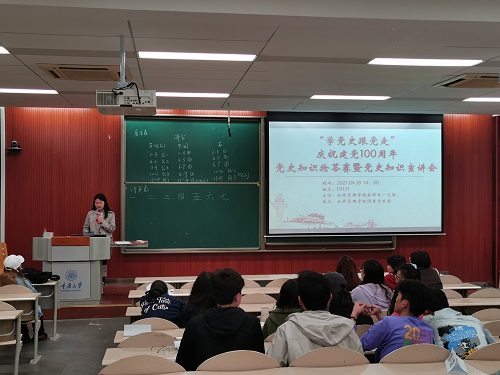 2021-04-192021年4月18日下午两点,由公共管理学院本科生一支部主办、公共管理学院团委学生会承办的“学党史,跟党走”庆祝建党100周年党史知识竞赛暨党史知识宣讲会在D1131教室顺利举办。20级全体入党积极分子到场参与和观看,学办主任兼19级辅导员王丽娟到场观看。今年,我们迎来了中国共产党建党一百周年。正如习近平总书记在党史学习教育动员大会上所说的那样,“回望过往的奋斗路,眺望前方的奋进路,必须把党的历史学习好、总结好,...