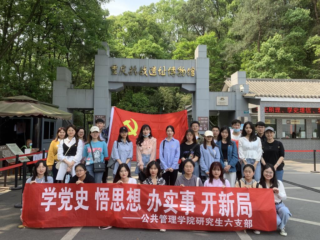 2021-04-29为深入开展党史学习教育,公共管理学院研究生六支部于4月22日开展“学党史,悟思想,办实事,开新局”实地研学活动。支部全体党员走进重庆抗战遗址博物馆,深入了解抗日战争时期陪都重庆的峥嵘岁月,追寻革命印记,重温烽火岁月,传承红色精神。此处抗战遗址作为抗日战争时期军事、政治、外交的一个重要场所,是中国人民抗日战争和世界反法西斯战争一些重大历史事件的重要见证,是重庆在抗日战争时期重要历史地位、重要历史贡献...