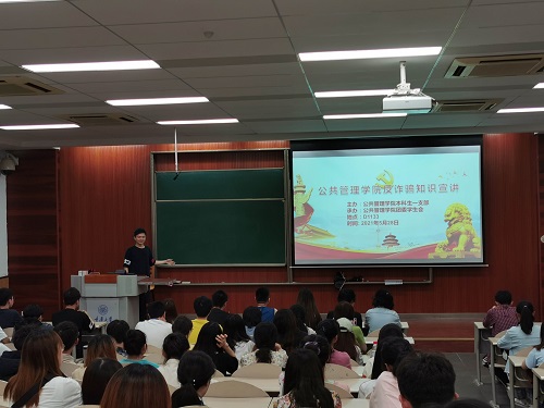 2021-05-302021年5月28日晚上八点五十,由公共管理学院本科生一支部主办、公共管理学院团委学生会承办的“学党史,跟党走,争做党的好青年”系列活动之反诈骗知识宣讲会于D1131教室准时展开。本次会议由公共管理学院本科一支部书记、学办主任19级辅导员王丽娟主持,20级辅导员李珊珊、本科生一支部全体预备党员及公共管理学院团委学生会全体成员出席本次会议,认真聆听指导。据悉,本次反诈知识宣讲会根据学校三年反诈专项行动方案要求...