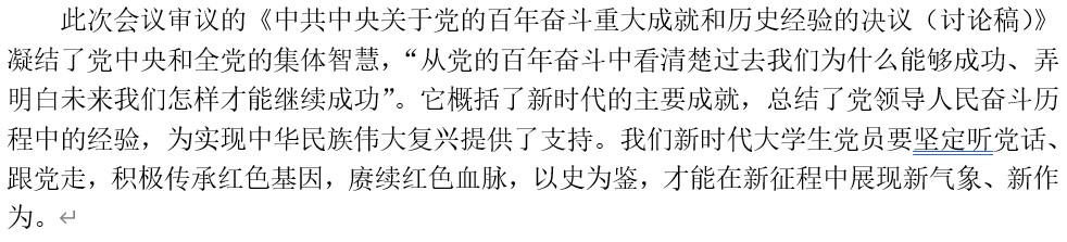 中国共产党第十九届中央委员会第六次全体会议,于2021年11月8日至11日在北京举行。为了学习并贯彻十九届六中全会精神,紧跟党的步伐,重庆大学公共管理学院本科生一、四支部举行“赓续红色血脉,创建标杆支部”主题教育系列活动之热议“十九届六中全会”,全体党员积极参与,共收到感想93篇。一、四支部全体党员主动对会议内容及其内涵实质进行了深刻系统的学习与思考,力求牢牢把握住社会主义发展的前进方向。一百年来,我们党...