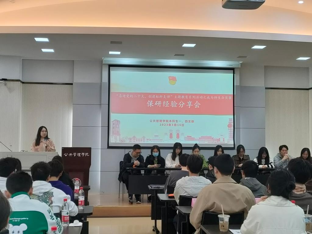2023-03-23为更好帮助2020级本科生同学做好保研夏令营前期准备工作,公共管理学院本科生一、四支部积极开展“我为师生办实事”活动。2023年3月16日15时,公共管理学院本科生一、四支部于学院楼102教室举办“喜迎党的二十大,创建标杆支部”主题教育系列活动之我为师生办实事:保研经验分享会。此次分享会,支部邀请了9位已推免的2019级优秀本科生进行保研经验的分享。活动由公共管理学院本科生一支部组织委员陈烨靖主持,学院2020级本科生...