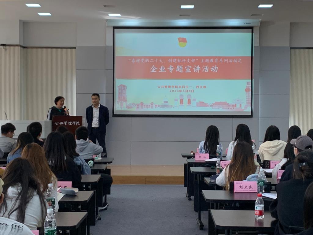 2023-05-17正值毕业季,为进一步落实毕业生的就业去向,加强对应届毕业生就业的指导与帮助,2023年5月8日下午15时,公共管理学院本科生一、四支部于公共管理学院楼102教室开展了“践行党的二十大,创建标杆支部”我为师生办实事系列活动之企业专题宣讲活动。此次活动由本科生一支部书记王丽娟同志主持,公共管理学院本科生一、四支部全体党员以及入党积极分子参加。支部邀请了中建西部建设西南有限公司的相关负责人前来宣讲。首先,王丽娟...