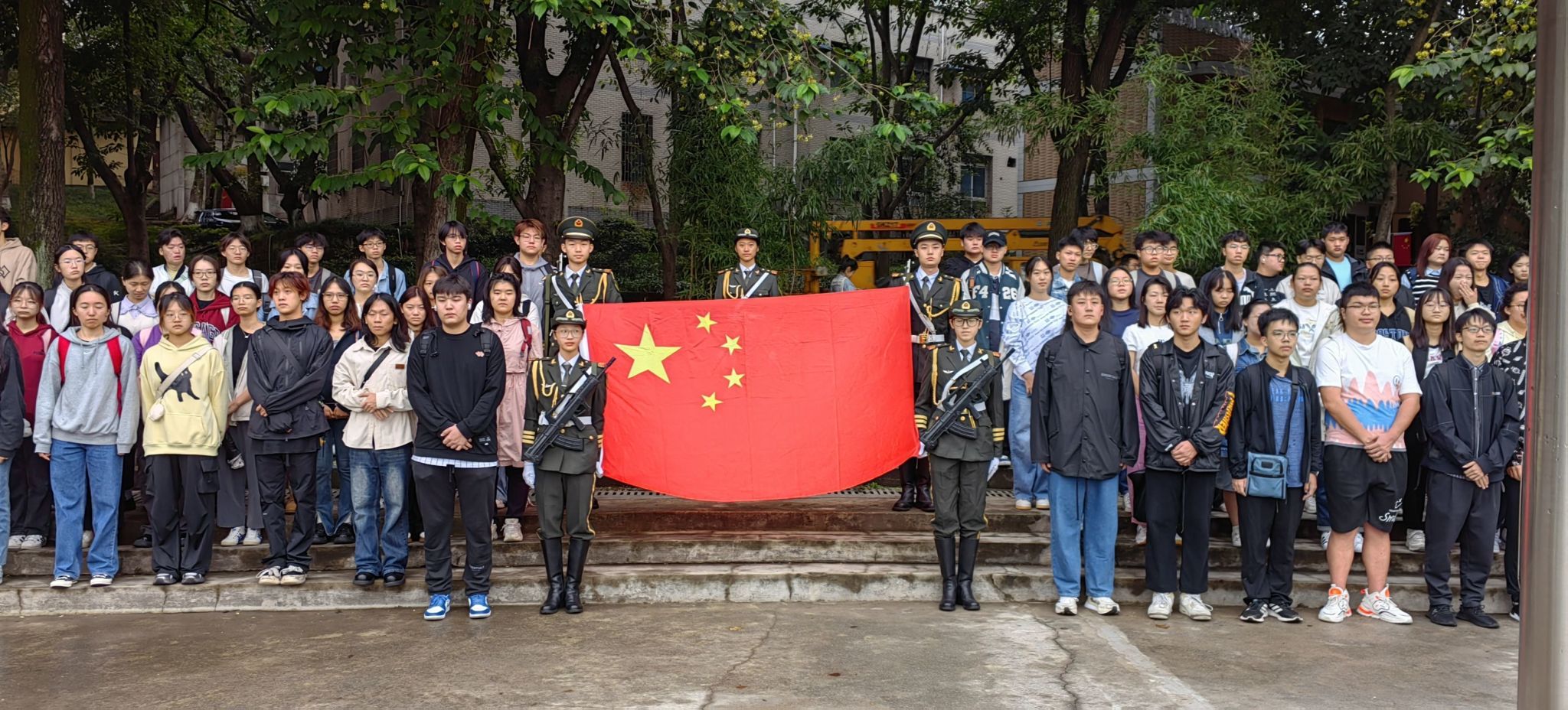 2023年10月9日上午7:30,国旗班与公共管理学院本科生一、四支部在思群广场上举行了隆重的升国旗仪式,数百名同学与老师齐聚一堂,共同见证了国旗冉冉升起的时刻。在晨曦的映照下,国旗护卫队正步走向旗杆,庄严地升起了鲜艳的五星红旗,激荡起一片神圣而威武的氛围。升旗仪式的举行,象征着我们对伟大祖国的忠诚和热爱,也是对国家繁荣昌盛的美好祝愿。随后在国旗下,2022级经济学1班王焙琪、朱雨、黄丹怡、牛佳琪四位领誓人宣...