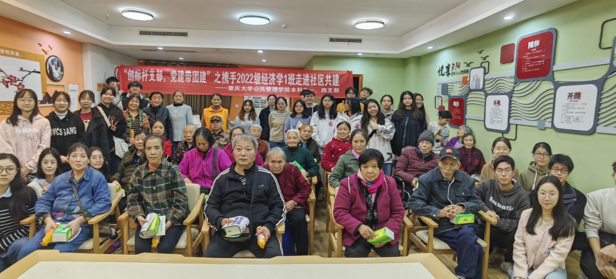 2023-11-30大手牵小手,党建带团建是公管学院本科生一四支部创建标杆支部的重要组成部分,关爱老年人,奉献社会,是宗旨,为了提高老年人的电信诈骗防范和邪教防范意识,保护他们的财产安全和人身安全,保一方平安,共同建设美好社区,2023年11月23日下午15:00,重庆大学公共管理学院本科生一、四支部联合2022级经济学1班于沙坪坝区松林坡社区便民服务中心举行“创标杆支部,党建带团建”之携手2022级经济学1班走进社区共建活动,本次活...