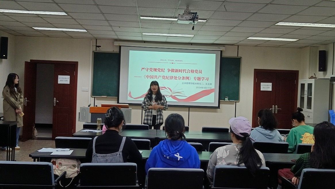 2024-04-15按照党中央统一部署,自2024年4月至7月在全党开展党纪学习教育。为加强基层学生党支部的纪律建设,提升青年学生党员对《中国共产党纪律处分条例》的认知和严守党规党纪的意识,推动全面从严治党向纵深发展,2024年4月10日,公共管理学院本科生二、五支部在学院楼106教室联合开展了《中国共产党纪律处分条例》专题学习。会议由本科生二支部书记徐柳、五支部书记陈致远主持,本科生二、五支部全体党员到场参加。本次学习由五支部...