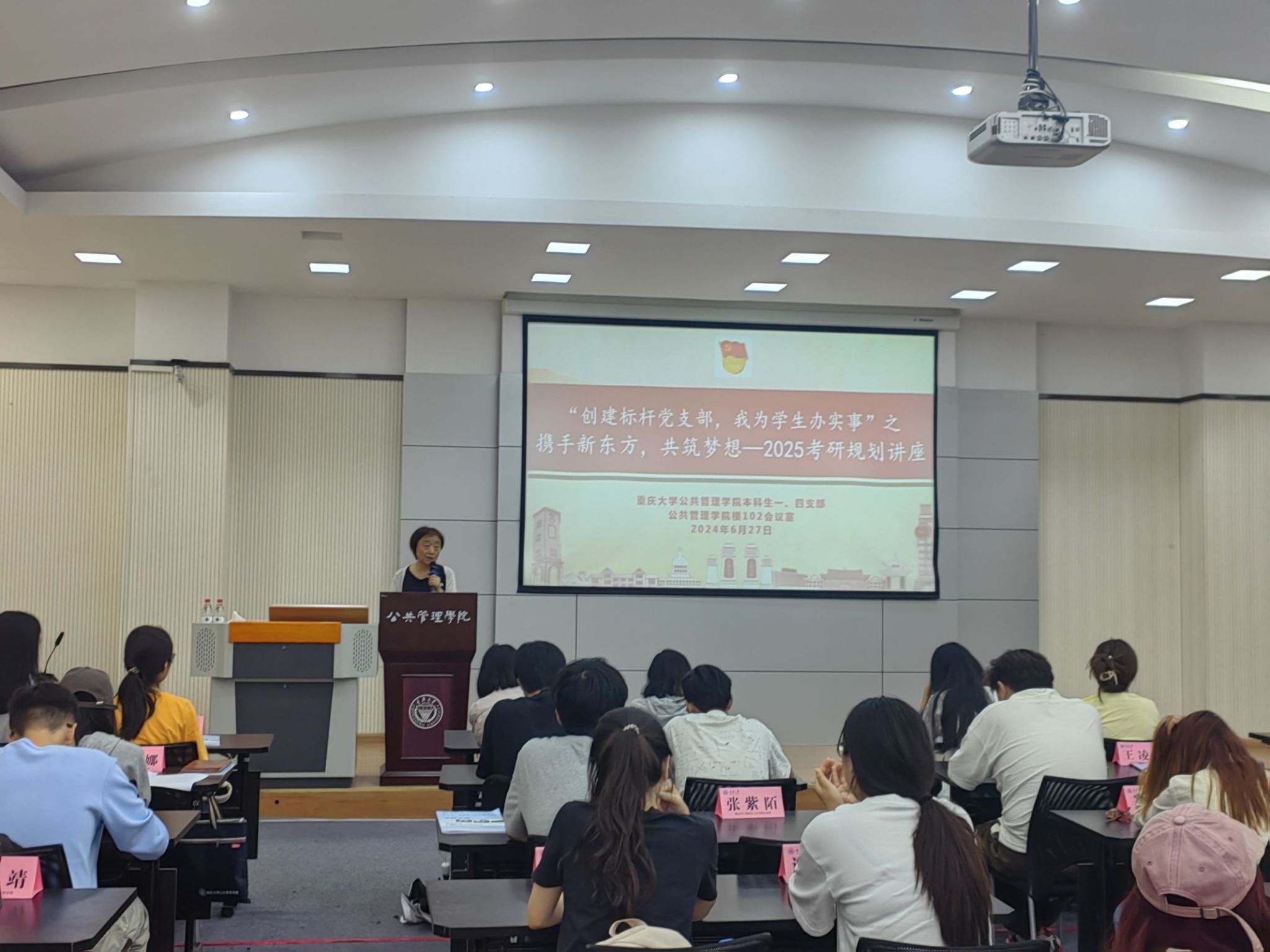 为进一步提升学院学生的考研规划意识,帮助广大学子明确目标、科学备考,公共管理学院本科生一、四支部于2024年6月27日下午2:30,在学院楼102多功能会议室隆重举行了“创建标杆党支部,我为学生办实事”之“携手新东方,共筑梦想”2025考研规划讲座。本科生一、四支部的全体党员、预备党员、入党积极分子和2022级全体同学都积极参与了此次讲座。讲座伊始,本科生一支部书记王丽娟同志发表了热情洋溢的致辞,她强调了考研对于学...