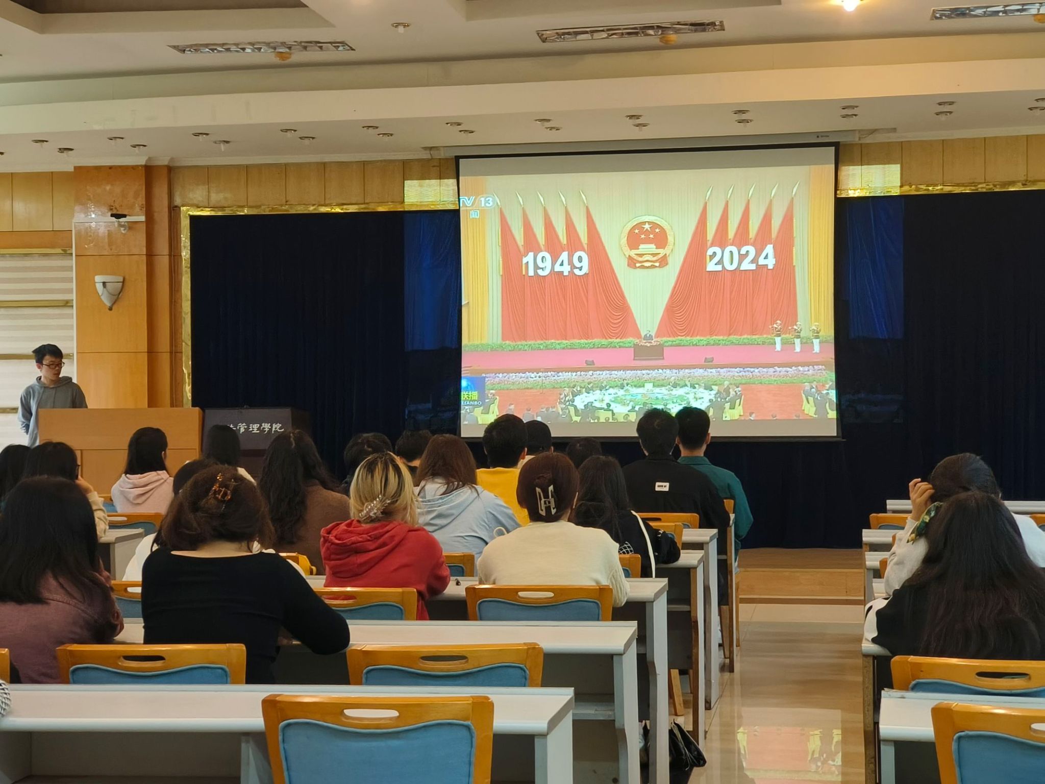 为深入学习贯彻习近平总书记在庆祝中华人民共和国成立75周年之际系列重要讲话精神,坚定学生党员和入党积极分子的理想信念,强化责任担当,加强支部建设,2024年10月10日下午14点,公共管理学院本科生三、六支部在学院楼202会议厅开展了“大力弘扬伟大爱国主义精神,把强国建设、民族复兴伟业不断推向前进”主题党日活动,2023级本科生辅导员徐柳,两个支部全体学生党员和入党积极分子到场参加。本科生六支部入党积极分子王旭东...