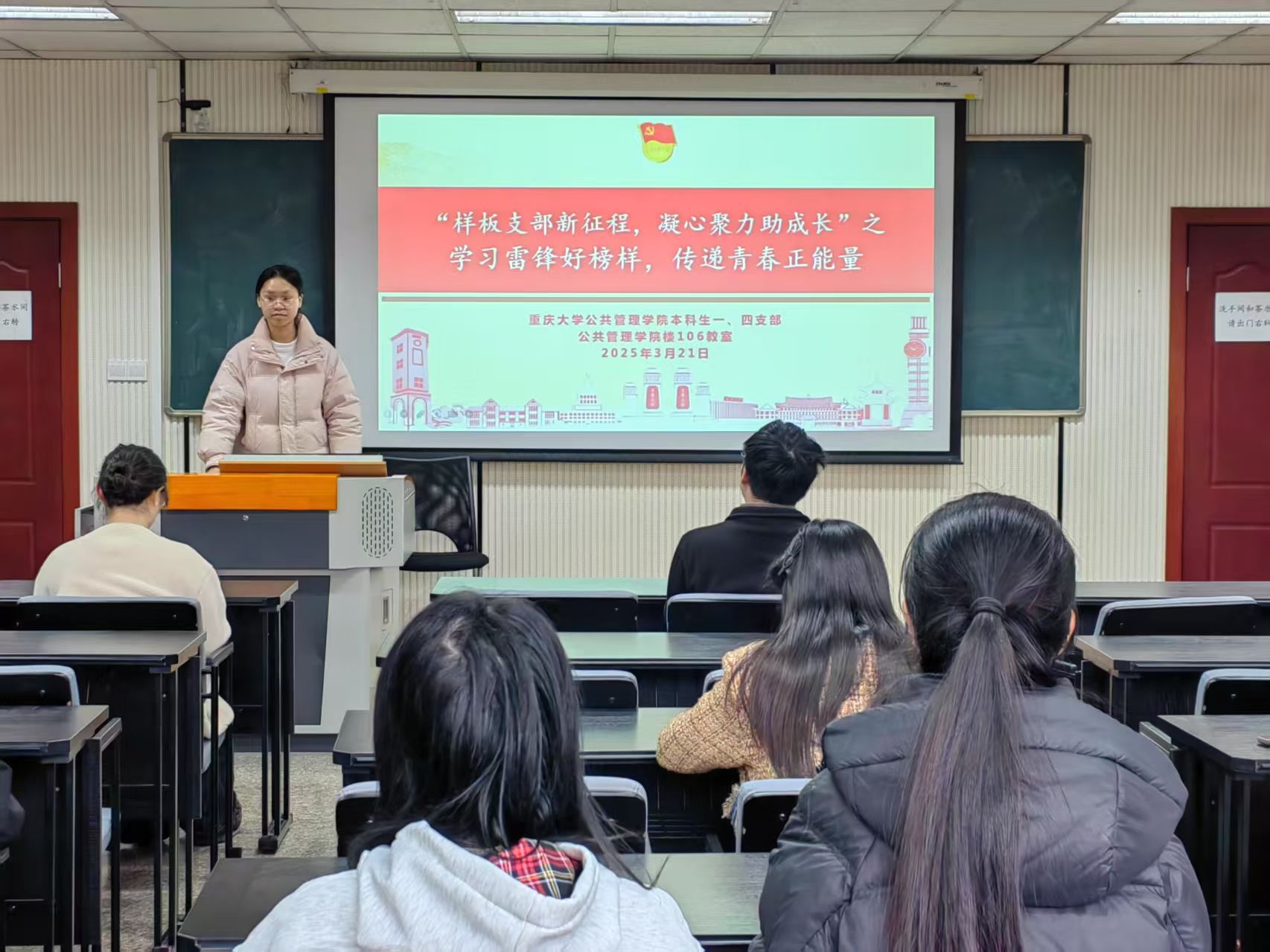 2025-03-242025年3月21日,重庆大学公共管理学院本科生一、四支部在学院楼106教室成功举办“样板支部新征程,凝心聚力助成长”之“学习雷锋好榜样,传递青春正能量”活动,全体党员、预备党员都积极参与。此次活动旨在深刻把握雷锋精神的时代内涵,让雷锋精神在新时代绽放更加璀璨的光芒。62年来,学雷锋活动在全国持续深入开展,雷锋的名字家喻户晓,雷锋的事迹深入人心,雷锋精神滋养着一代代中华儿女的心灵。活动伊始,主持人简要回顾...