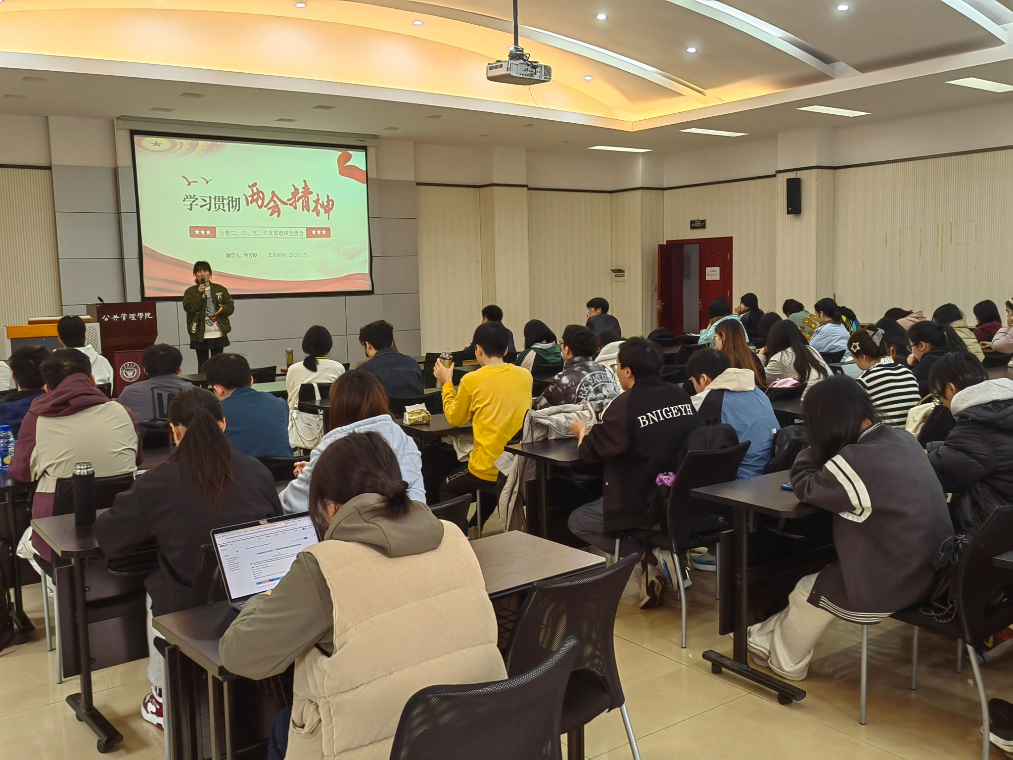 2025-03-29为深入学习贯彻全国两会精神,激发青年党员和入党积极分子的使命担当,2025年3月21日下午13:00,公共管理学院本科生二、三、五、六支部在学院楼102教室开展了“学习贯彻两会精神”主题党日活动。活动由本科生二支部书记徐柳主持,四个支部的全体党员和入党积极分子到场参加。活动伊始,由本科生三支部钟芳婷同志领学,通过专题视频系统学习了2025年全国两会精神,重点解读了政府工作报告中关于经济、科技和教育等领域的新部署新...