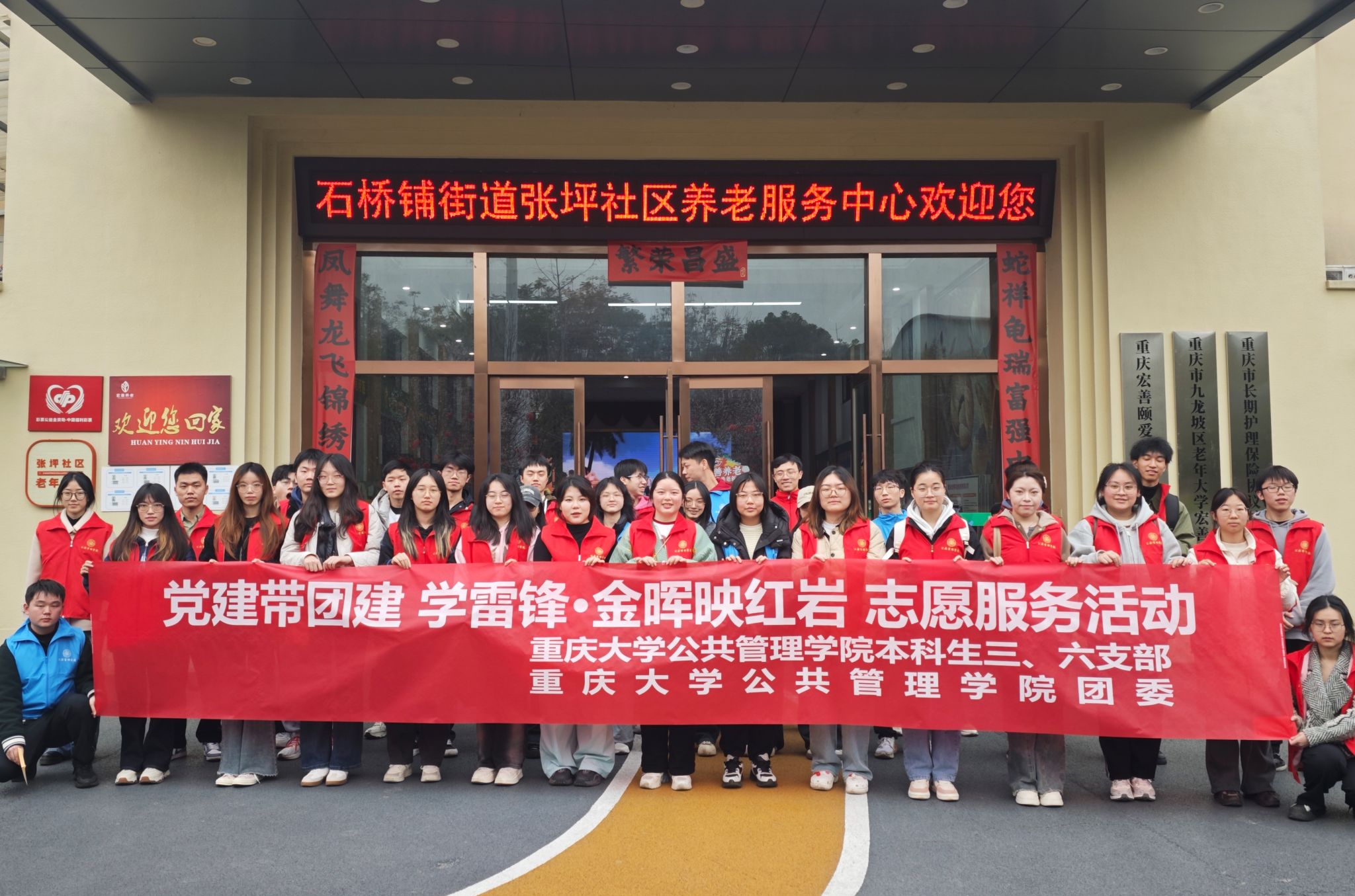 2025-03-21在第62个“学雷锋纪念日”暨第25个“中国青年志愿者服务日”到来之际,为深入学习宣传贯彻党的二十届三中全会精神,深刻领会新时代雷锋精神与红岩精神,引领青年学生进一步弘扬“奉献、友爱、互助、进步”的志愿精神,奋进新时代、奋进新征程,2025年3月9日,重庆大学公共管理学院本科生三、六支部与学院团委携手重庆市石桥铺街道张坪社区养老服务中心,共同策划和组织了“党建带团建 学雷锋·金晖映红岩”志愿服务活动,37名学...