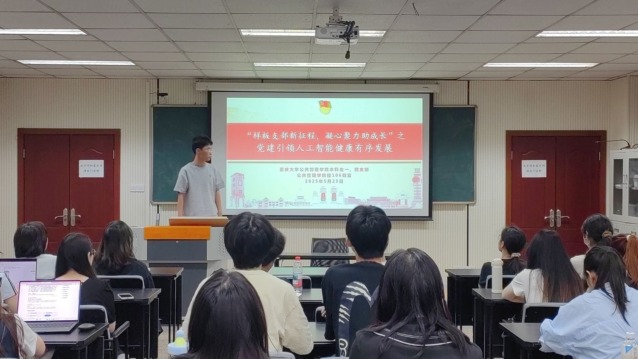 2025年5月23日下午4:00,公共管理学院本科生一、四支部在学院楼106教室举行“样板支部新征程,凝心聚力助成长”之党建引领人工智能有序发展主题党课活动。本次活动深入学习贯彻习近平总书记关于人工智能发展的重要指示精神,结合党的建设工作领导小组会议与教育部党组会议的最新要求,探讨人工智能技术发展与监管的平衡路径,由本科生一支部书记王丽娟组织,本科生四支部预备党员王焙琪主持,一、四支部的全体党员、预备党员都...