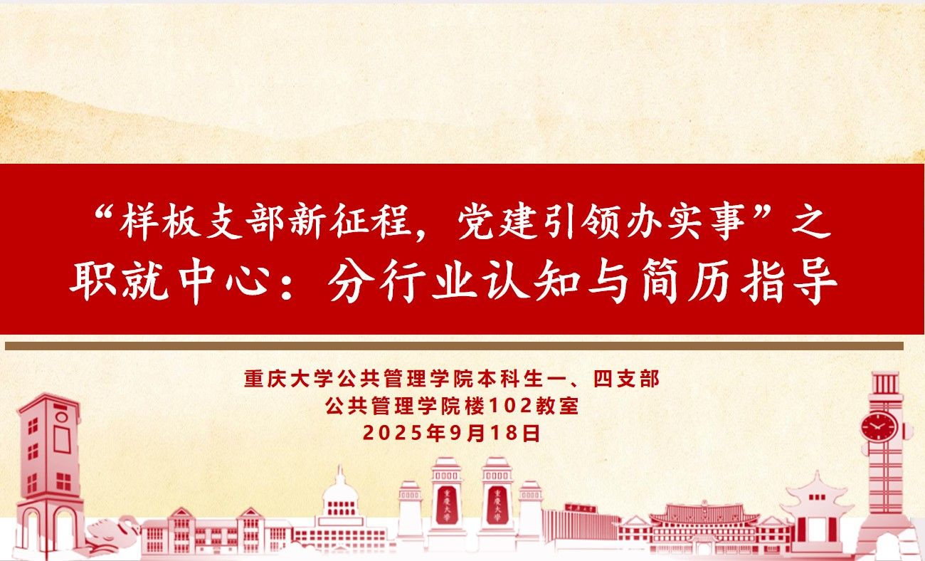 2025-09-222025年9月18日下午16点,公共管理学院本科生一、四支部在学院楼102会议室开展“样板支部新征程,党建引领办实事”就业系列活动之“职就中心:分行业认知与简历制作指导”。活动由学院本科生一支部书记王丽娟牵头,邀请职就中心推荐拥有19年社会招聘经验、曾任职多家大型企业人力资源总监的刘航老师主讲,为2026届本科毕业生提供精准指导。刘老师以“行业认知+简历优化”为核心展开分享。他先从行业概述与发展趋势切入,结合公共...