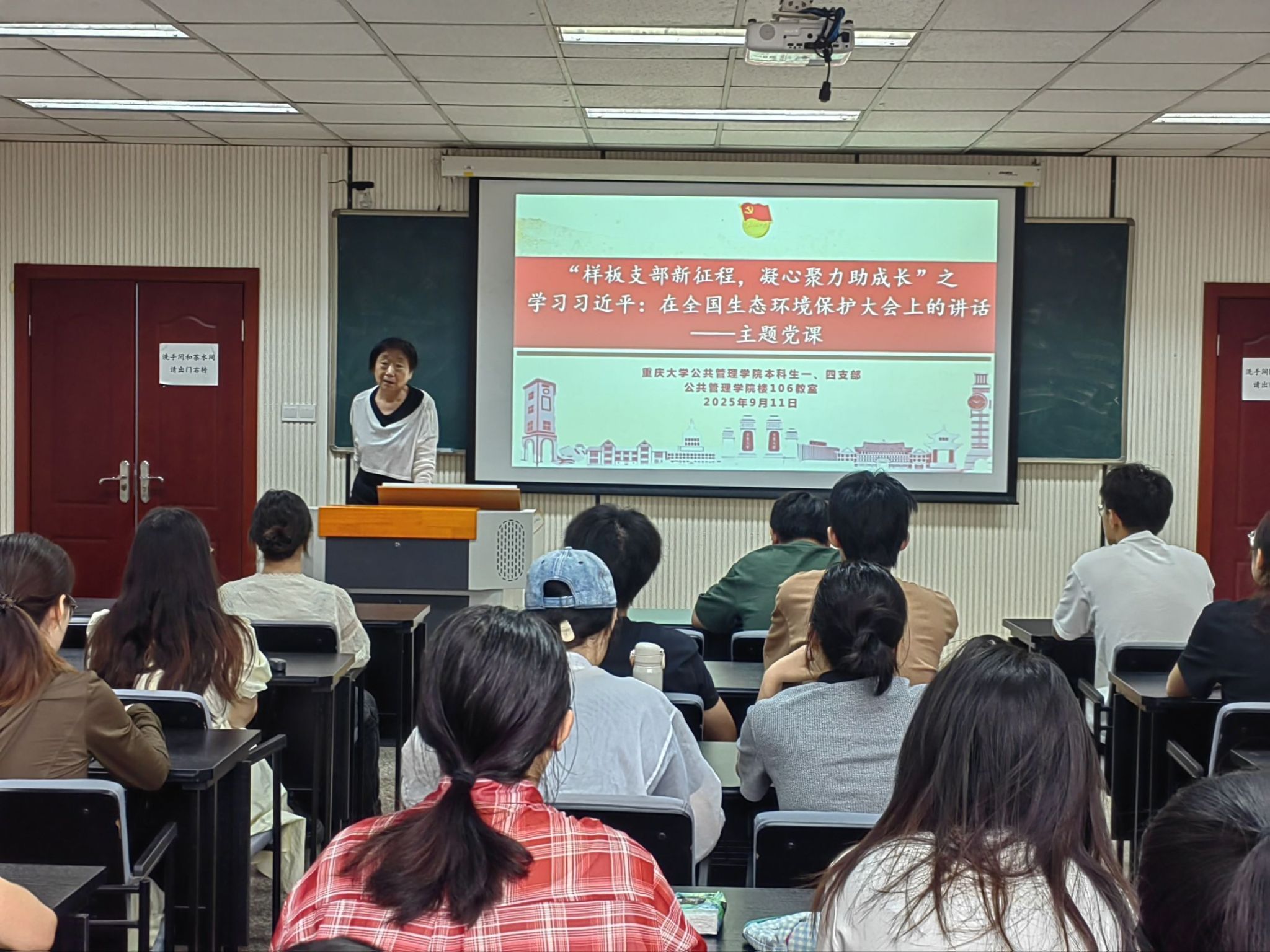 2025-09-162025年9月11日下午16时,公共管理学院本科生一、四支部在学院楼106教室举行“样板支部新征程,凝心聚力助成长”之“学习习近平总书记重要讲话精神,共筑美丽中国新征程”主题党课活动。本次活动深入学习贯彻习近平总书记在全国生态环境保护大会上的重要讲话精神,结合党中央关于生态文明建设的决策部署,系统总结新时代我国生态环境保护成就,明确新征程生态文明建设的重点任务与实践路径。活动由本科生一支部书记王丽娟支持...