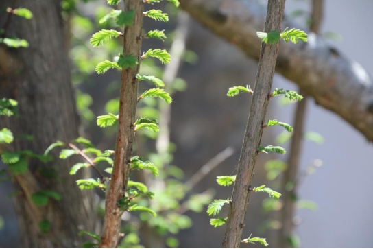 淡抹鹅黄鬼斧工,校园曲径绕芳丛。