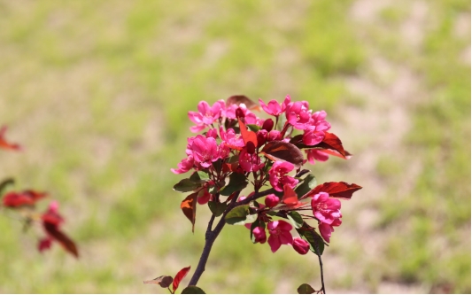 桃树枝繁现令容,新妆嫩蕊引工蜂。