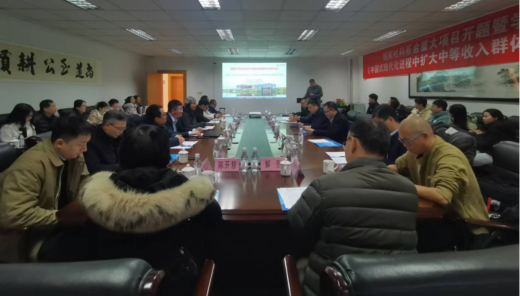 2024-12-272024年12月14日上午,由重庆大学公共管理学院刘渝琳教授担任首席专家的2023年度国家社科基金重大项目“中国式现代化进程中扩大中等收入群体的实现路径研究”(批准号23&ZD174)开题暨学术研讨会在重庆大学公共管理学院204会议室举行。 开题研讨会会议现场该研讨会有来自重庆市社会科学界联合会、农业农村部农村经济研究中心、厦门大学、对外经济贸易大学、西安交通大学、山东大学、云南大学、重庆大学等单位的十余位领导、专...