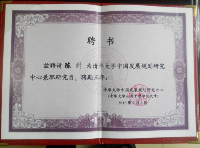 2015-09-22近日,清华大学中国发展规划研究中心举行仪式聘任星空体育 陈升教授为兼职研究员。