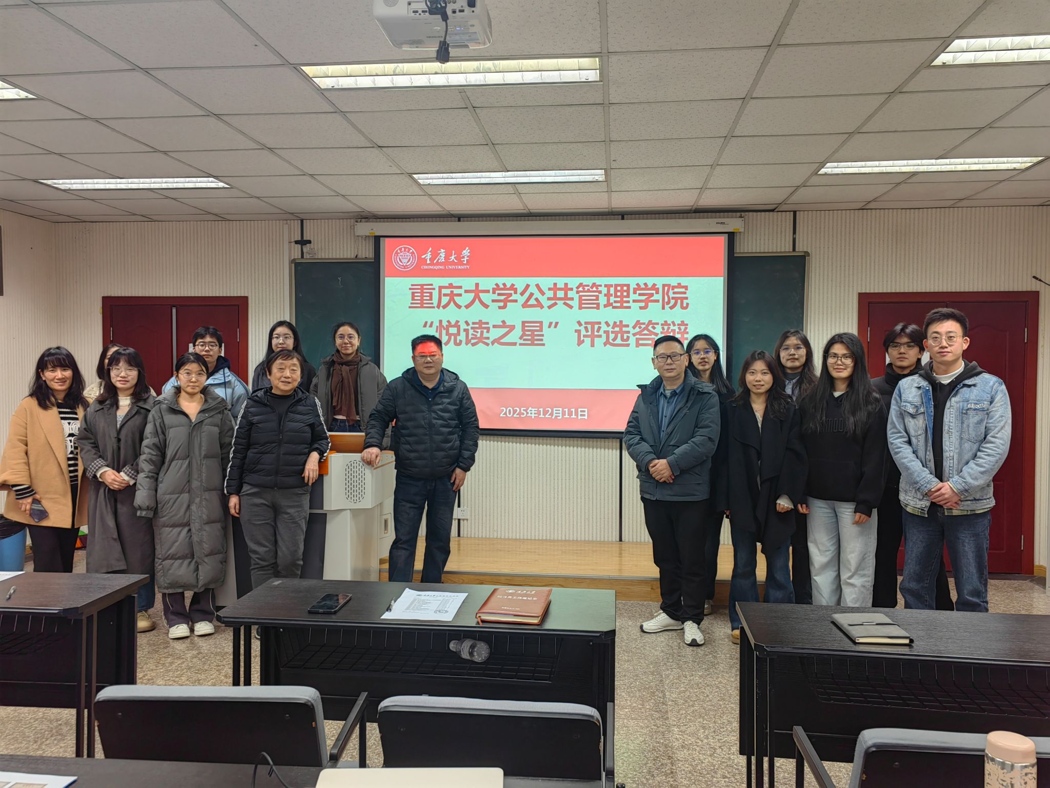 2025-12-192025年12月11日下午1点,为深化“书香沐重大”校园文化建设,营造崇尚阅读、勤学善思的良好学风,重庆大学公共管理学院“悦读之星”答辩评选会在学院106教室圆满举行。本次评选设置学习达人、阅读达人、爱上图书馆达人三个奖项,7名学生选手同台竞技,最终许诺、袁柏文、赵柯然分别斩获三项殊荣。本次评选活动得到学院高度重视,党委副书记周余斌领衔,全体辅导员及学办、研办研究生兼职辅导员共11人组成专业评委团,确保评选过...
