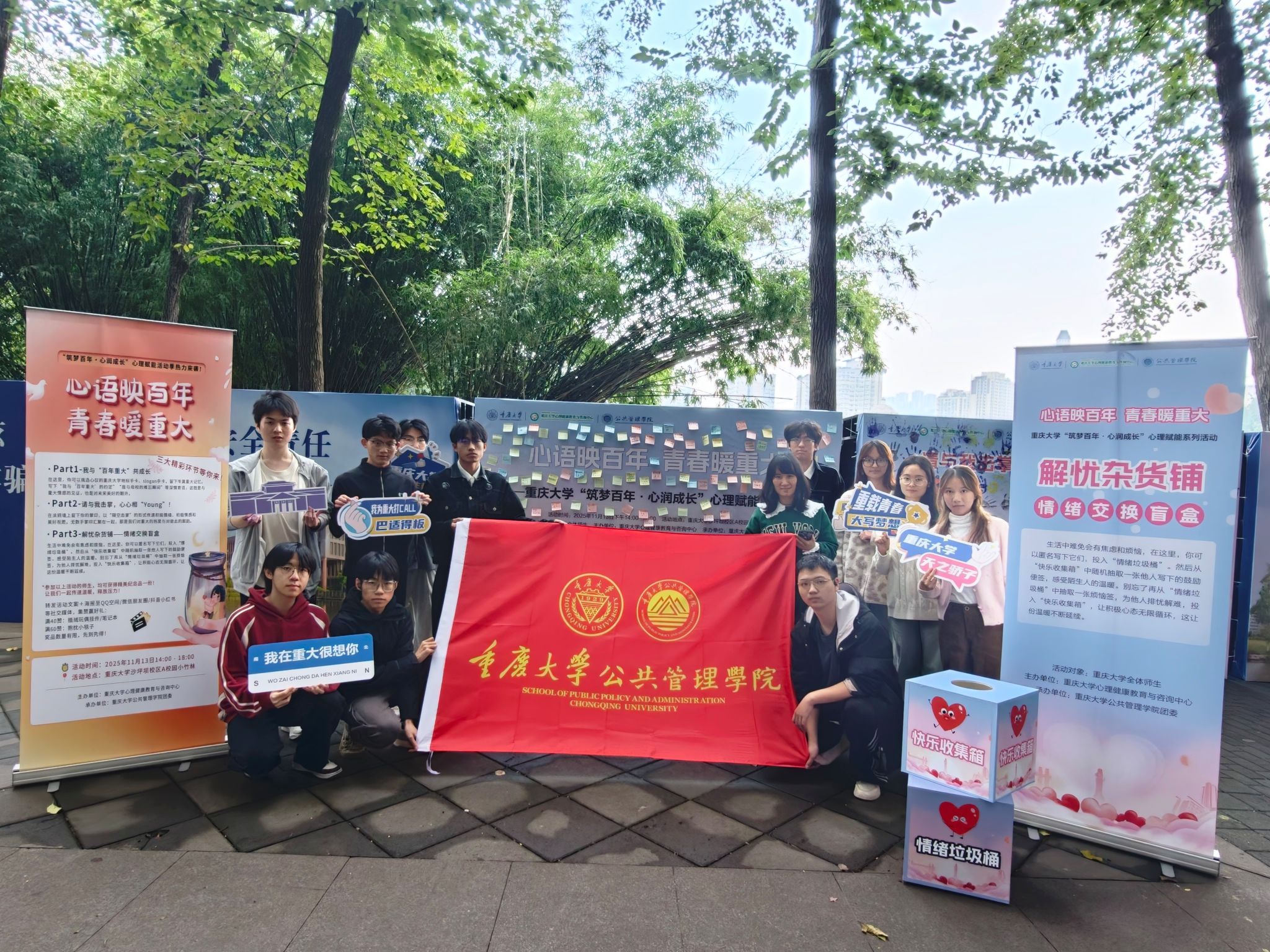 2025-12-12为深入贯彻《全面加强和改进新时代学生心理健康工作专项行动计划(2023—2025年)》要求,充分发挥心理健康教育活动的长效育人机制,营造积极健康、和谐温暖的校园文化氛围,2025年11月13日下午,由重庆大学心理健康教育与咨询中心主办、公共管理学院团委承办的“心语映百年,青春暖重大”心理赋能活动在沙坪坝校区A校园小竹林顺利举行。活动吸引了全校学生的积极参与,反响热烈。 本次活动紧扣“筑梦百年·心润成长”主题,...