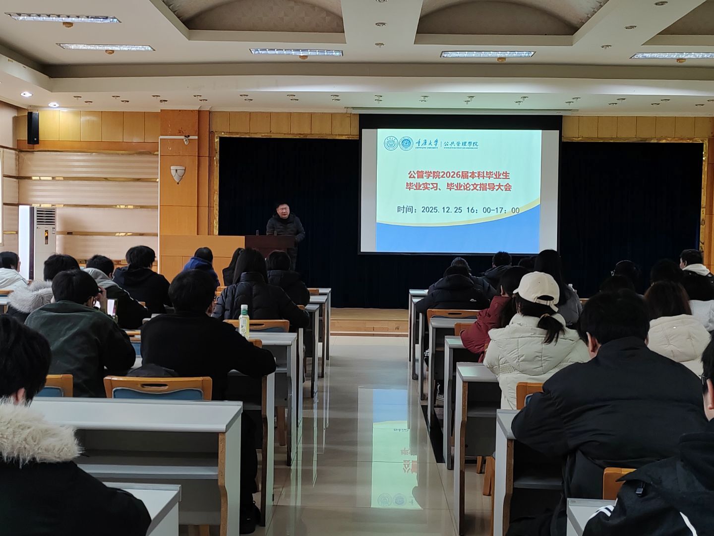 为精准赋能2026届本科毕业生稳步推进毕业论文撰写、圆满完成毕业实习任务,2025年12月25日下午16:00,学院在102报告厅隆重召开专题指导大会。学院党委副书记、纪委书记周余斌,副院长丁从明莅临会议指导,会议由2026届本科毕业生辅导员王丽娟主持,全体毕业生齐聚现场参会。会议伊始,周余斌重点强调了毕业学分修读的核心意义,提醒同学们务必重视学分审查工作,以严谨态度对待最后一年的实习实践与毕业论文,为本科生涯画上圆...