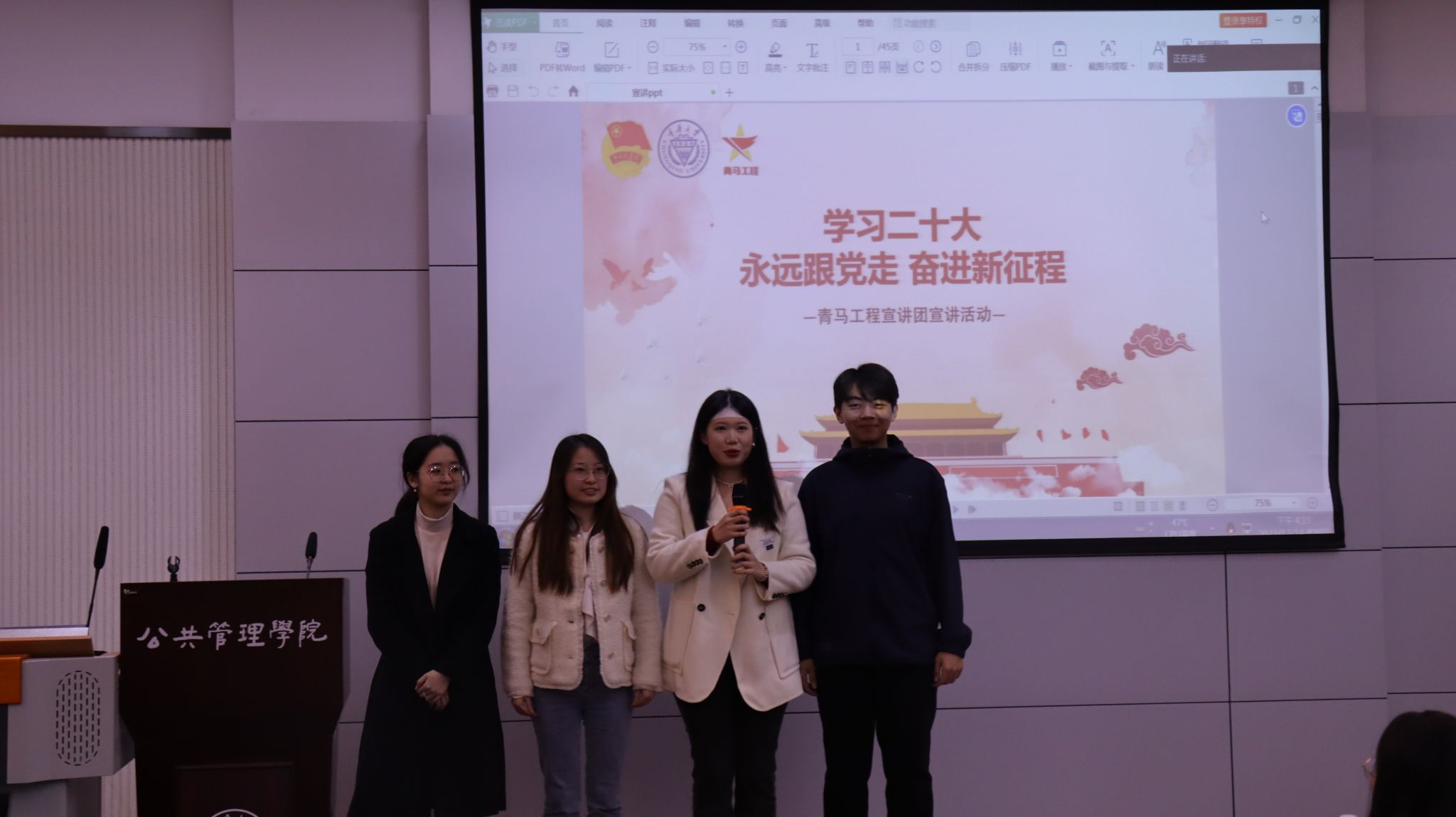 2023-12-22为进一步学习宣传贯彻党的二十大精神,推动公共管理学院学生努力成长为有理想、敢担当、能吃苦、肯奋斗的新时代好青年,2023年12月14日,星空体育 青马班宣讲团在学院楼102教室开展“学习党的二十大、永远跟党走、奋进新时代”主题宣讲活动。会议伊始,本科2020级重庆市级青马班宣讲员郭佳良同学带领同学们回顾了党的二十大精神,着重阐述“五个牢牢把握”的具体内容。通过学习,同学们结合“五个牢牢把握”要求,深度思考对“做什...