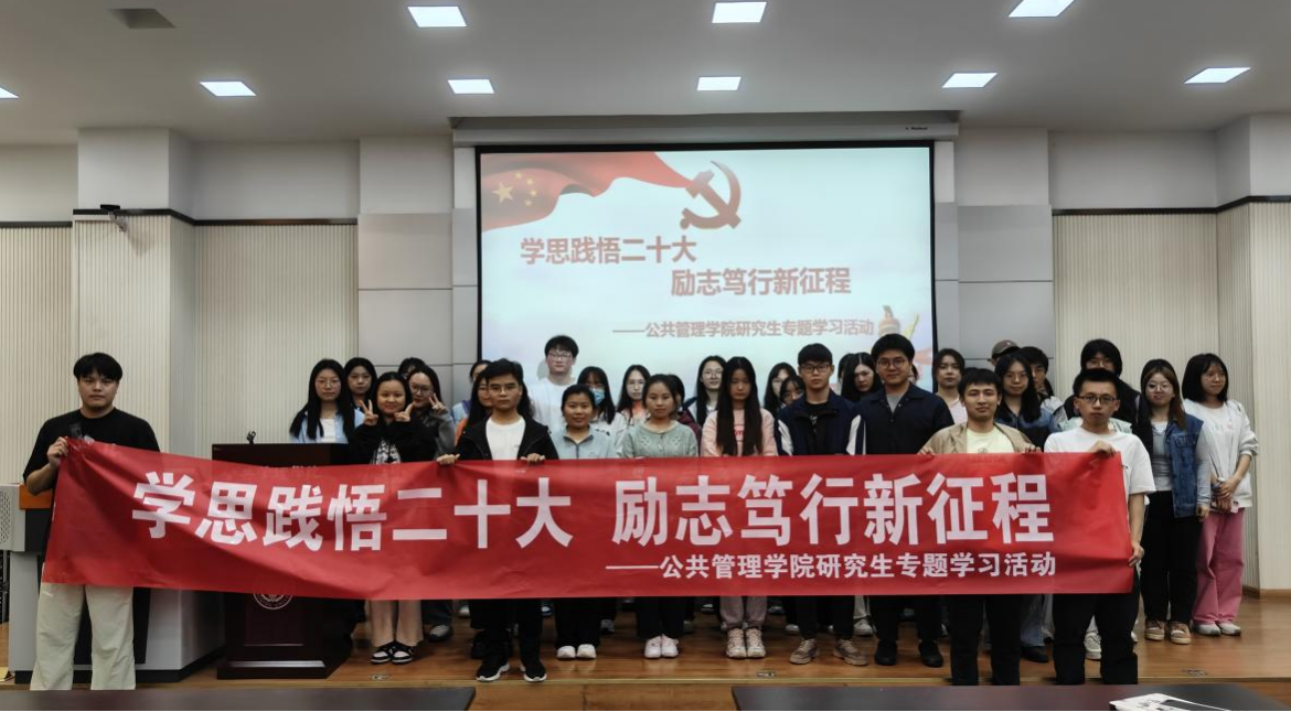 2024-05-202024年4月24日晚上19:30,重庆大学公共管理学院开展的“学思践悟党的二十大,励志笃行新征程”研究生专题学习活动在重庆大学公共管理学院102报告厅顺利举办。正式活动包括五个环节。在“攀登新时代思想高峰,奋进新青年伟大征程”环节,由重庆大学2022级高级青马班学员李璇进行习近平新时代中国特色社会主义思想的学习宣讲,从青年角度学习和理解习近平新时代中国特色社会主义思想,引导广大研究生学子全面学习领会习近平新...