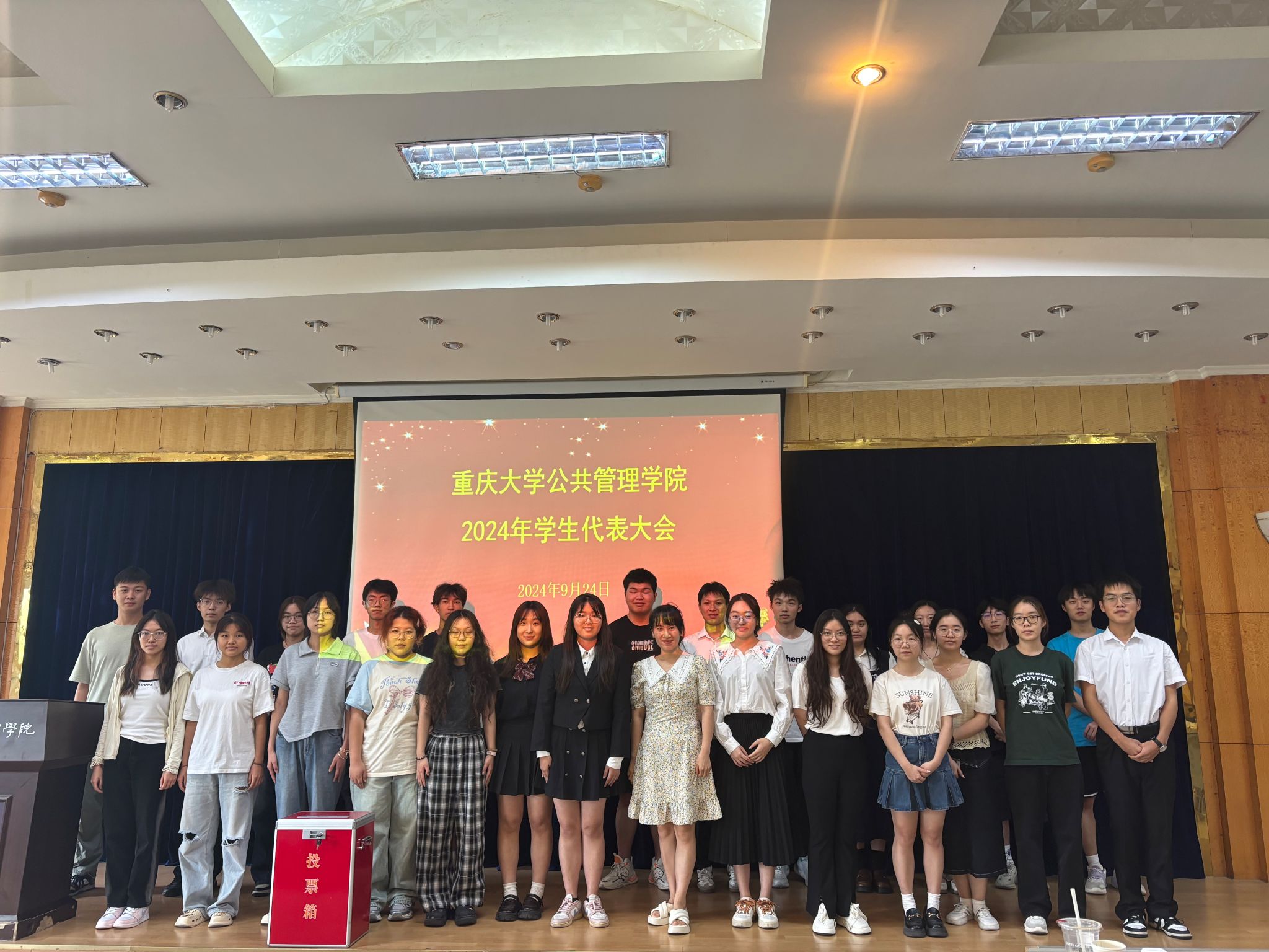 2024-09-30为迎接重庆大学第三十三次学生代表大会的召开,在校团委和校学生会的统一部署和批复下,在星空体育 党委和团委的审批和指导下,2024年9月24日下午13点,重庆大学公共管理学院2024年本科生学生代表大会于学院202报告厅召开。院团委书记、学生会秘书长徐柳以及110多名来自学院2021级、2022级、2023级的本科生学生代表参与了本次大会。大会由学院本科生学生会主席黄丹怡主持。会议伊始,全体起立,奏唱国歌,在高昂的歌声中,本次学生...