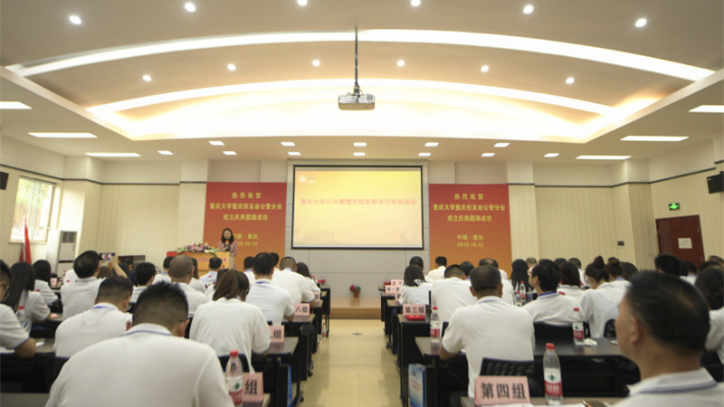 2019-10-15聚各界校友,庆九秩华诞。2019年10月12日下午,为庆祝重庆大学建校90周年,密切在渝公管校友的联系与交流,重庆大学重庆校友会公共管理分会成立大会在公共管理学院102多功能会议厅举行。重庆大学党委常委、副校长廖瑞金出席大会并致辞,公共管理学院党委书记张玲,校友总会副秘书长姜雪峰,重庆校友会会长刘加才,公共管理学院副院长张鹏,公共管理学院党委副书记、纪委书记袁晓浩,深圳校友会副会长兼秘书长包学平,重庆校友会...