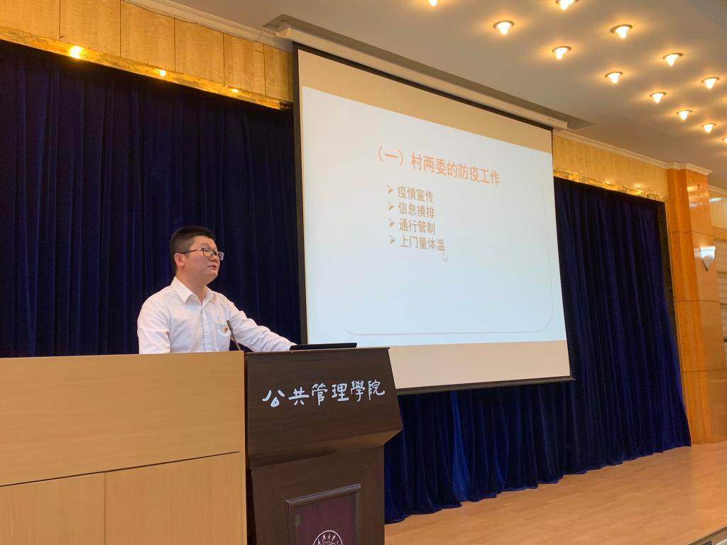 2020-07-022020年7月1日下午4点,学院纪委委员、行政管理系湖北籍教师王辉副教授在学院二楼多功能厅讲授了一堂题为“党建如何引领基层社区抗疫”的专题微党课。学院领导班子、党委委员、本次受“七一”表彰的个人、先进集体代表和本学年度发展的预备党员聆听党课。学院其余师生党员通过腾讯视频会议在线上听课。党课由学院党委副书记、纪委书记袁晓浩主持。王辉的党课分为两大部分。他首先以2020年春节在湖北农村老家的所见所闻,介绍了在...
