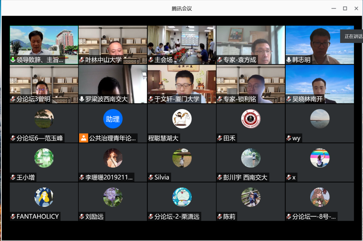 2020-09-102020年7月18日,“第十一届公共治理青年论坛”在云端举行,重庆大学公共管理学院硕士研究生胡倩同学,2017级本科生柳鲲鹏、范玉峰应邀参加会议,并在论坛上作交流发言。