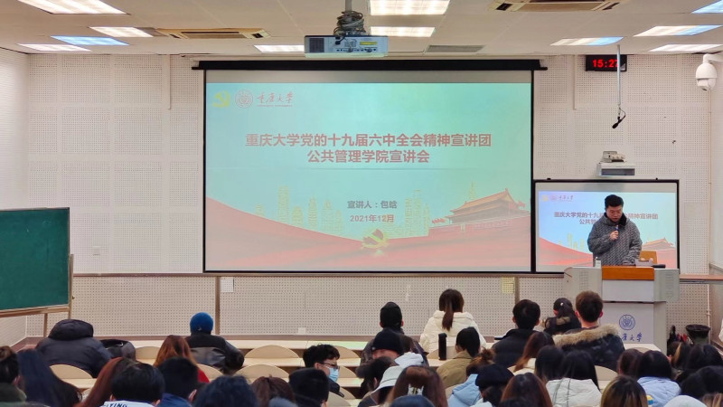 2021-12-272021年12月26日下午,学校学习贯彻党的十九届六中全会精神宣讲团成员、公共管理学院辅导员包晗为学院2020级全体本科生作党的十九届六中全会精神专题宣讲。包晗重点围绕学习《中共中央关于党的百年奋斗重大成就和历史经验的决议》和习近平总书记关于《决议》的说明进行宣传宣讲,师生共同交流学习体会。会议指出,在建党百年这个重大历史时刻,党的十九届六中全会作出我们党历史上第三个历史决议,聚焦总结党的百年奋斗重大成就...