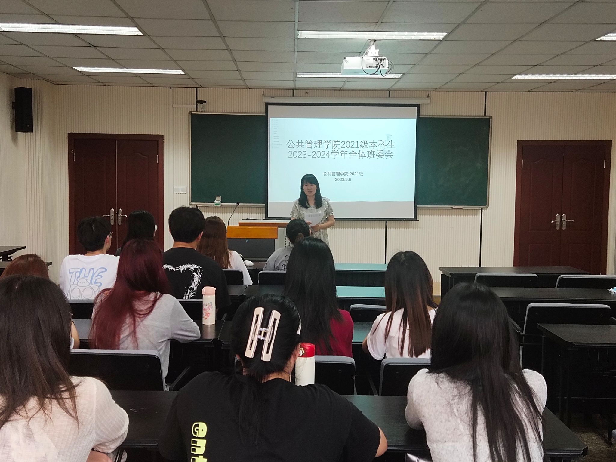 2023年9月5日下午,公共管理学院2021级本科生2023-2024学年班级学生干部大会在学院104教室召开。会议由2021级辅导员徐柳老师主持,2021级本科生2023-2024学年届全体班委到会参加。会议伊始,徐柳老师强调了各位班委在班级班风建设中的重要性,指出每位班委不仅要各司其职还要团结一心,共同打造学习氛围良好、富有班级凝聚力的班集体。其中,班长、团支书、学习委员和心理委员等班委应当承担更多责任,积极组织筹备主题班会、团...